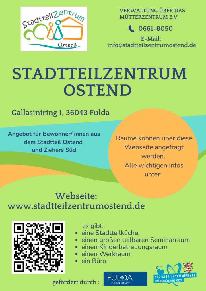 Die Stadt Fulda lädt alle Akteure sowie Anwohnenden herzlich ein, kreative Ideen zu entwickeln und die Räume sinnvoll zu nutzen. Ob Workshops, Treffen oder Veranstaltungen – gemeinsam gestalten wir eine lebendige Nachbarschaft und bereichern die Vielfalt im Stadtteil!